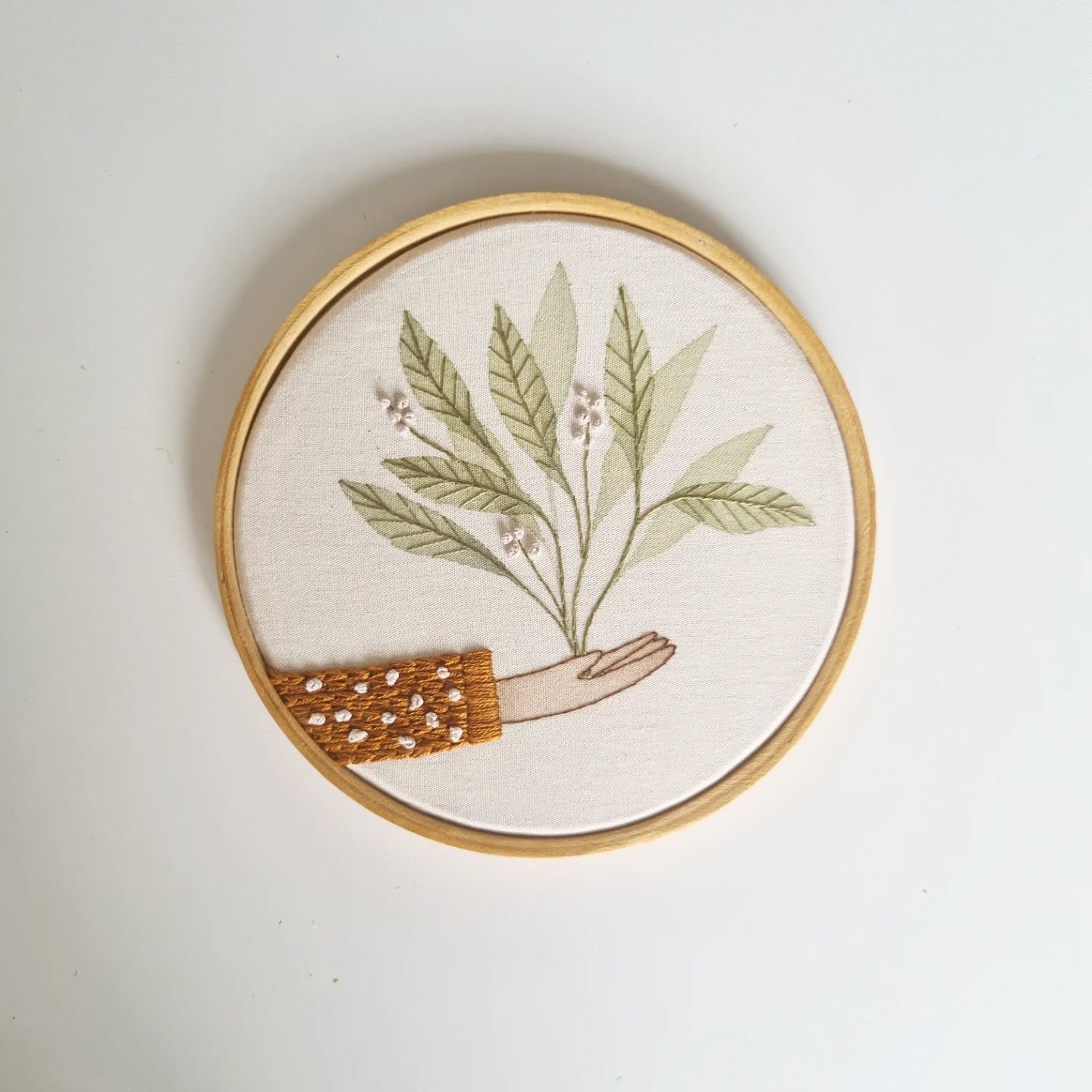 - hand-embroidered and hand-painted wooden hoop 14,5cm